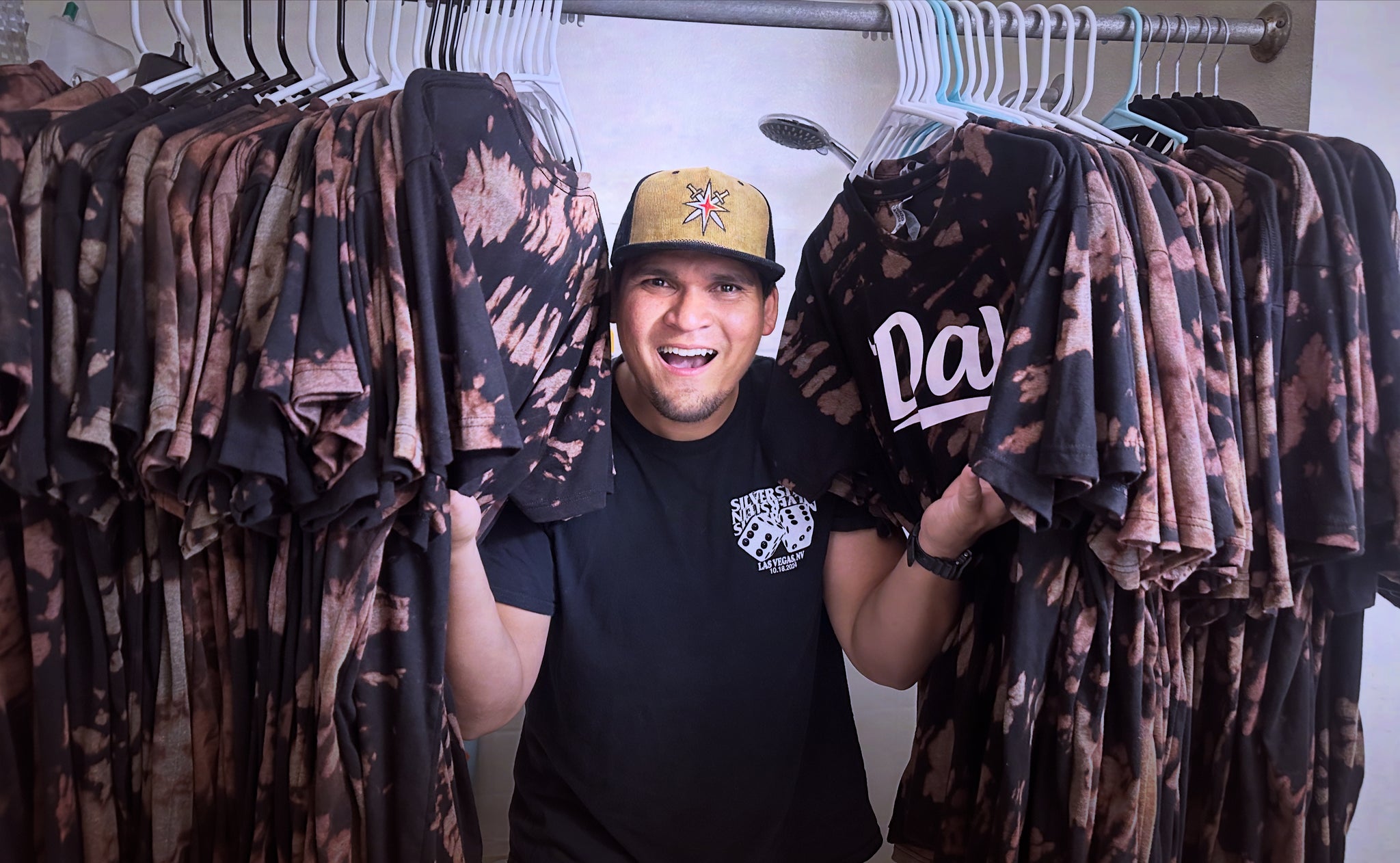 Each shirt is unique and reverse tie dyed by hand by Dak